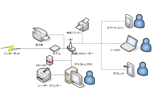 もし、パソコンやプリンター、スマホ・タブレットなど2台以上の電子機器を利用しているのなら、それらを繋いでLANを構築することにより、独立して利用するよりデータの編集・保存や周辺機器を有効な活用ができます。